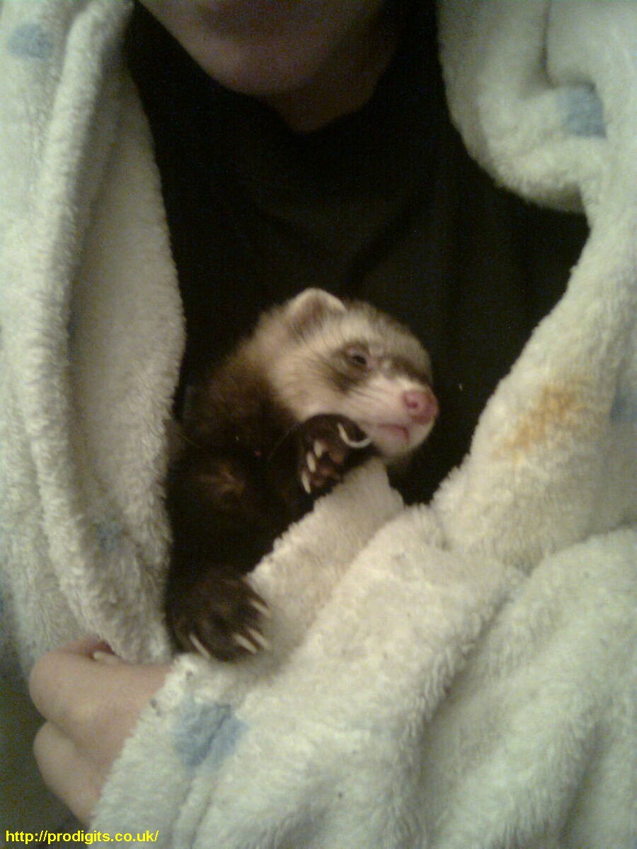My new ferret Dizzy with my daughter. He's only 5 months old and huge already! :)< Prev|Next >Download